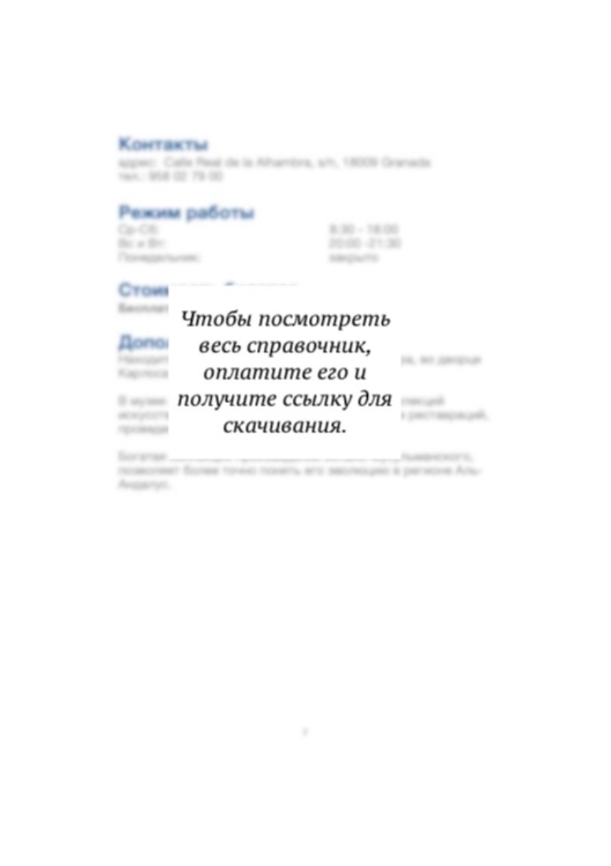 C помощью серии электронных справочников по городам юга Испании, от издательства #MarivannaTour. Вы сможете не ограничиваться посещением, только популярных мест Гранады.